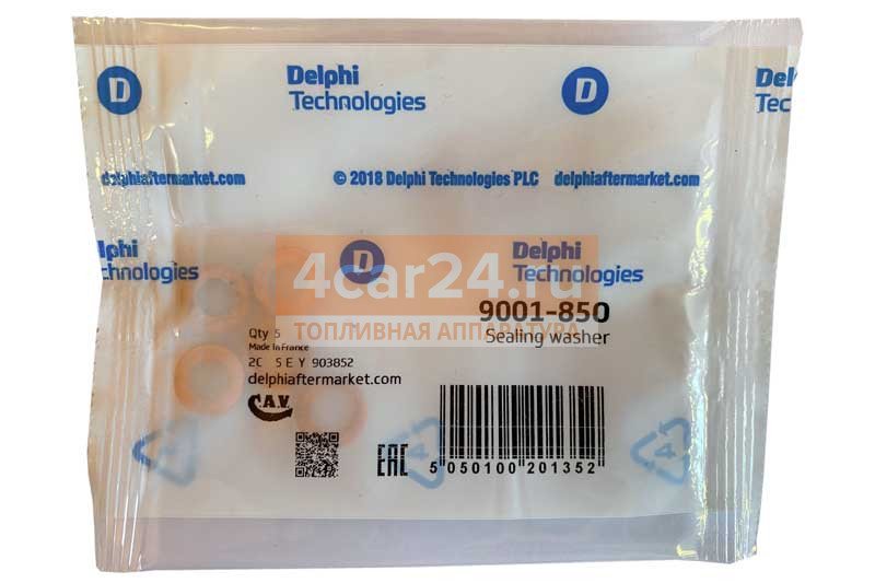 Шайбы медные теплозащитные, комплект 5 штук, - 9001-850 Delphi. Страна-производитель: Франция.